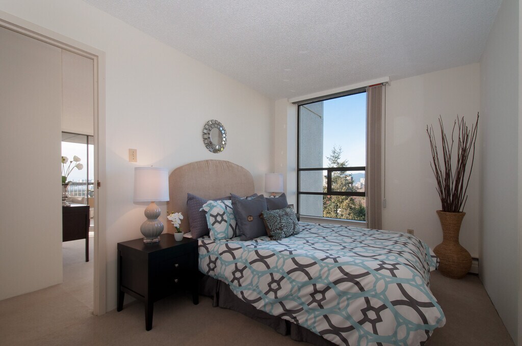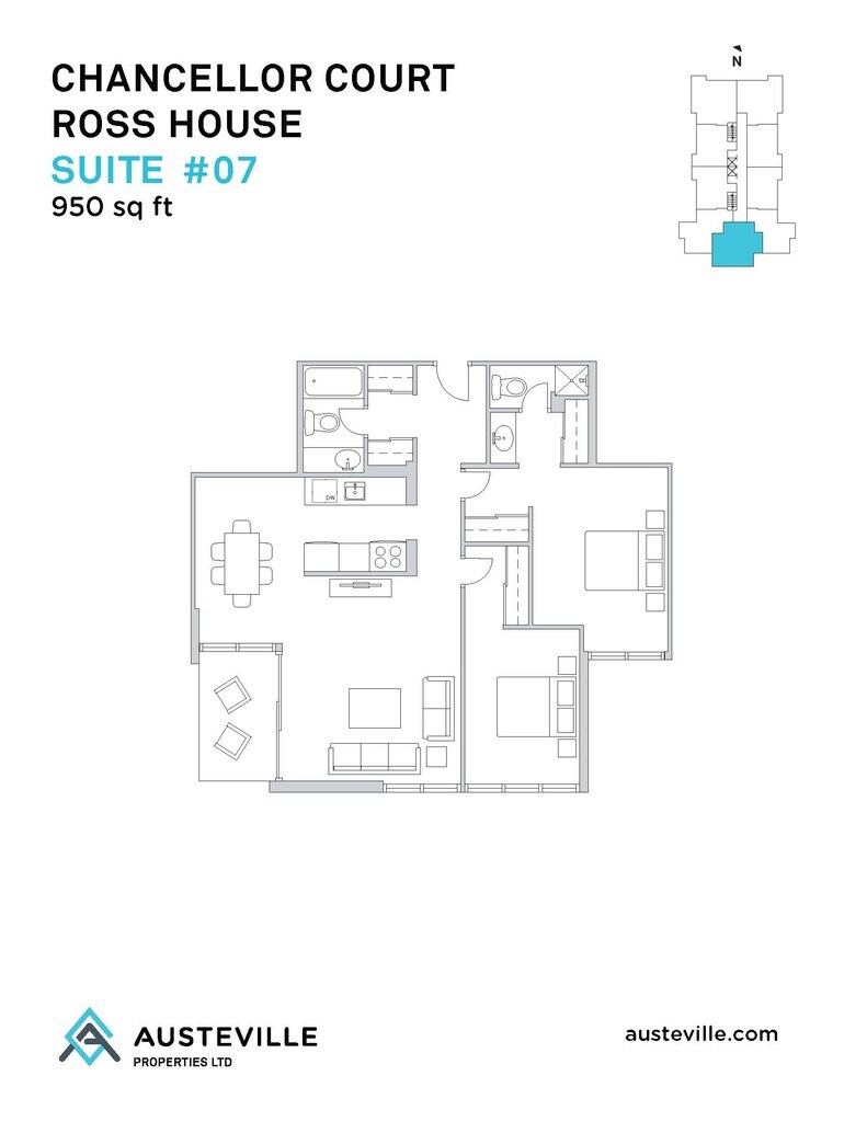 Chancellor Court offers spacious unfurnished and pet-free rental suites in a fabulous UBC location. Chancellor Court's two 13-storey apartment buildings—Ross House and Mackenzie House—offer renters a variety of spacious floorplans, secure living and modern amenities all on the UBC campus. They are the ideal rental apartments for mature students, families or professionals who desire a quiet, secure rental building that puts them within an easy walk or cycle to the heart of Vancouver's UBC campus, recreational facilities (UBC Aquatic Centre, Thunderbird Winter Sports Centre, University Golf Club), cultural attractions (the iconic Museum of Anthropology, Chan Centre for the Performing Arts, UBC Botanical Garden), shops and services (University Marketplace, Wesbrook Place neighbourhood) and medical facilities (UBC Hospital). With large one-bedroom, two-bedroom, two-bedroom plus den and three-bedroom penthouse apartments, there is a floorplan to meet virtually every renter's need. Each rental apartment has an open balcony, from which residents can enjoy bright, natural light and stunning views that include the North Shore Mountains, UBC campus and Vancouver in general. The two rental towers boast tastefully decorated common areas and numerous modern amenities for all residents to enjoy. There is a brand-new fitness centre in Ross House, an indoor, heated pool and sauna in Mackenzie House, plus recently renovated laundry rooms with high-efficiency washers and dryers in both buildings. Heat, hot water and electricity are all included in monthly rental fees at Chancellor Court, and many of the apartments have dishwashers plus ample in-suite storage. Penthouse suites have in-suite laundry. Renters will find a convenient evo car sharing station right on site. Austeville also offers residents storage lockers plus bicycle storage. To ensure peace of mind for renters, Austeville provides onsite resident managers, state-of-the-art secure keyless access and secure, gated parking.