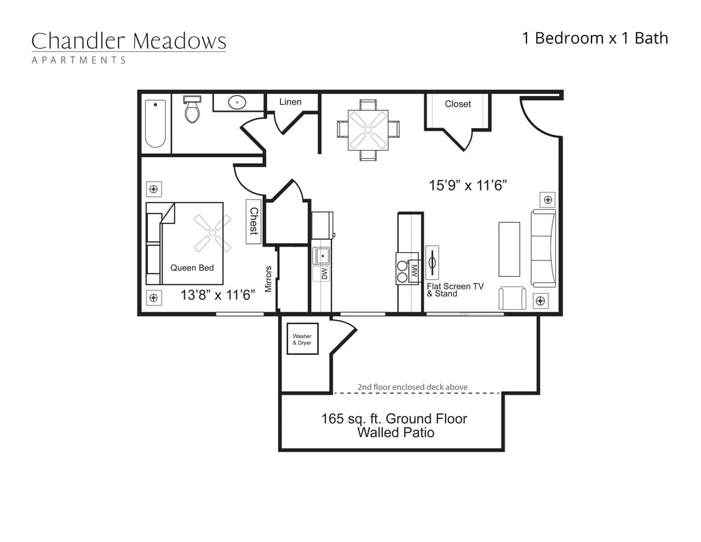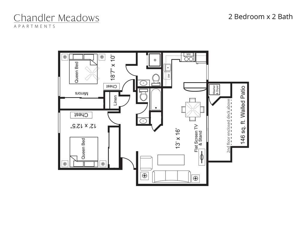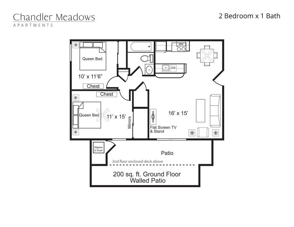1x1 Furnished - Floorplan 6 2 Bedrooms