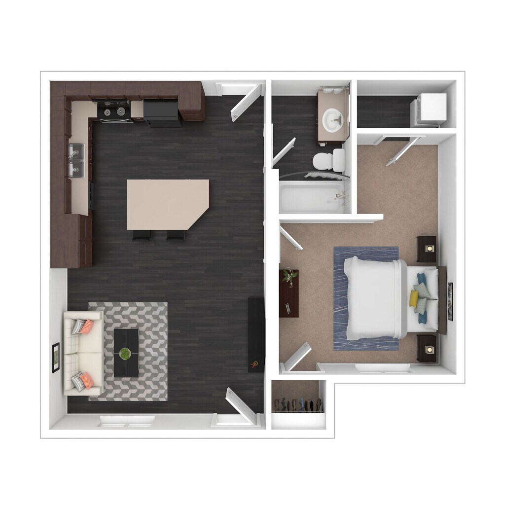 Studio, 1 Bath, 561-777 sq ftAvailable NowModel Gallery