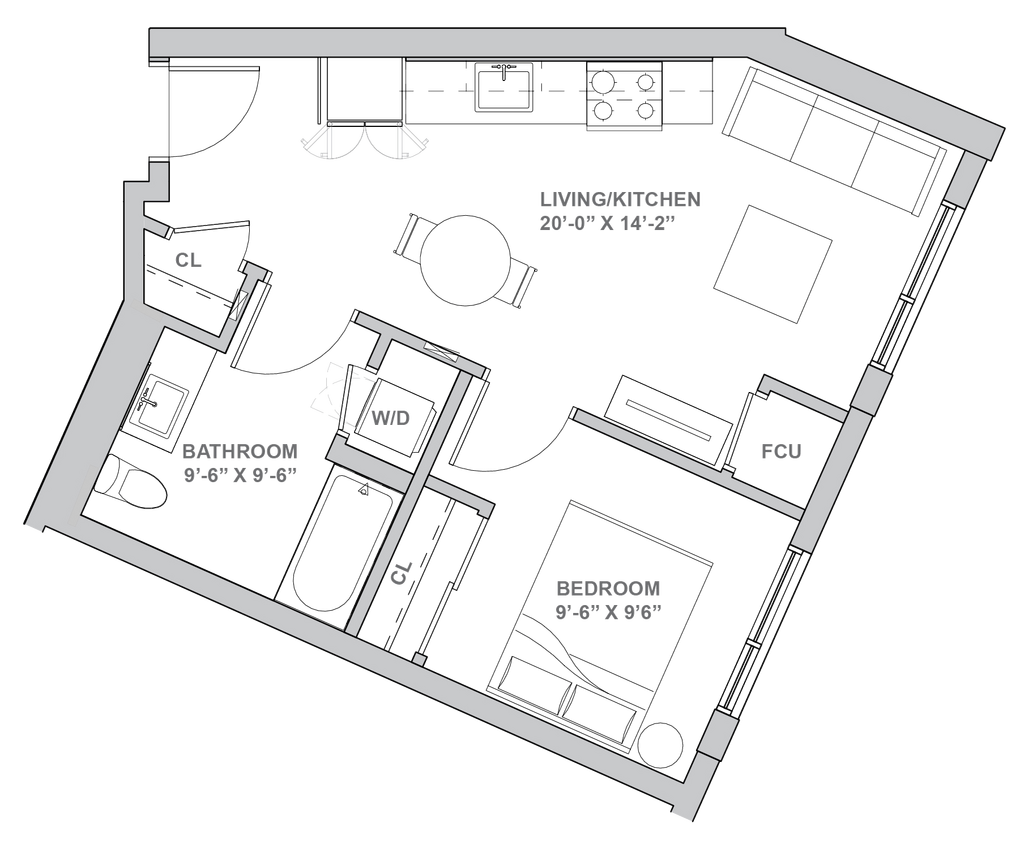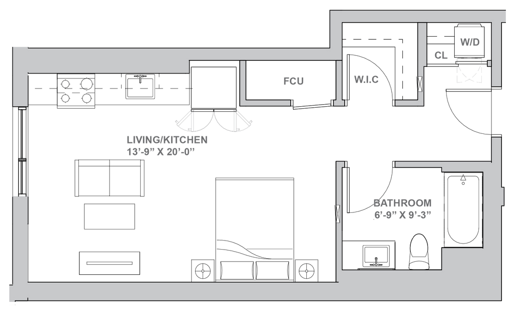 0B - Floorplan 2 Apartment Unit: 857Apartment Model: 0B$1,817Studio, 1 Bath, 483 sq ftAvailable NowFloorplan 0C