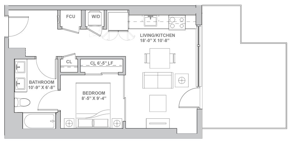 Studio, 1 Bath, 639 sq ftAvailable NowModel Gallery