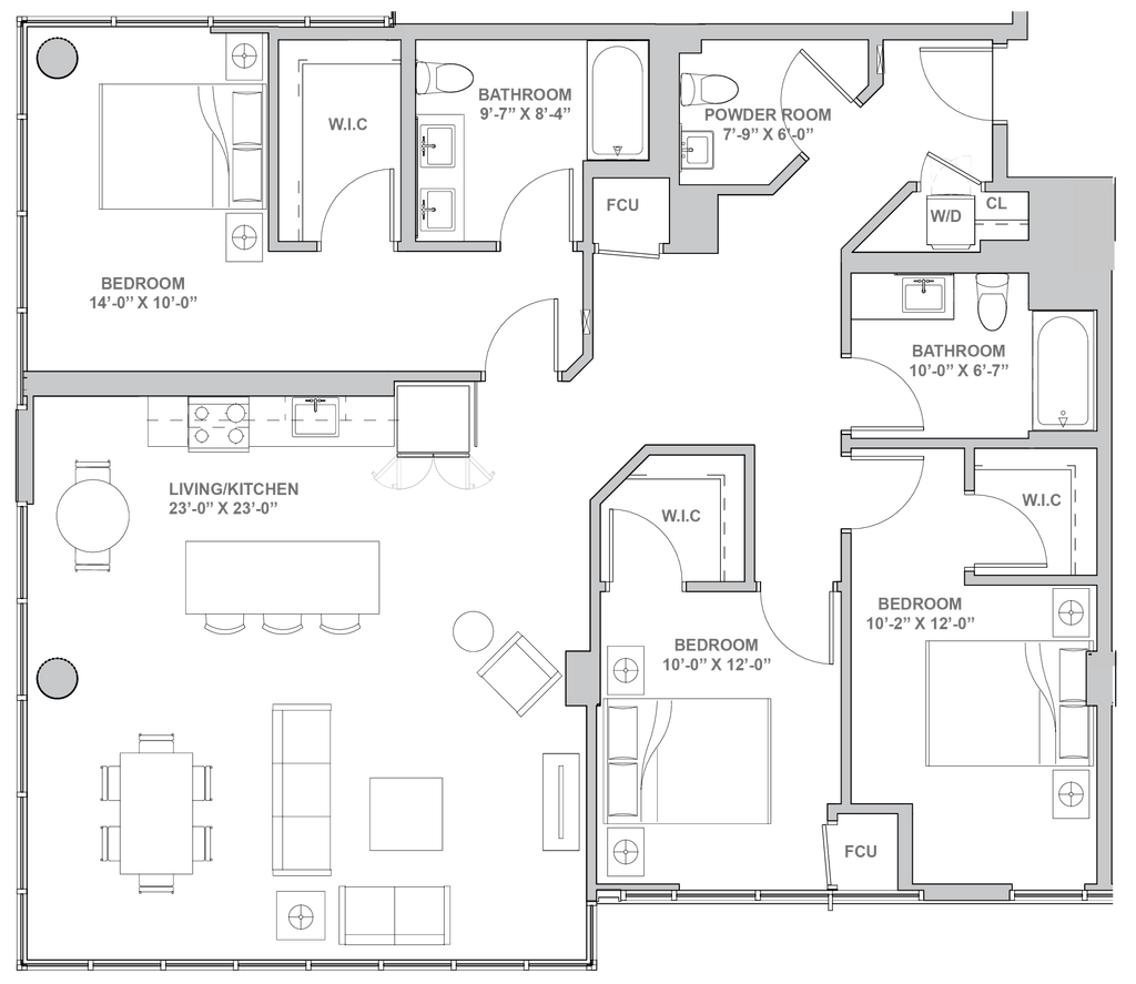 - Full-Sized In-Suite Washer and Ventless Dryer