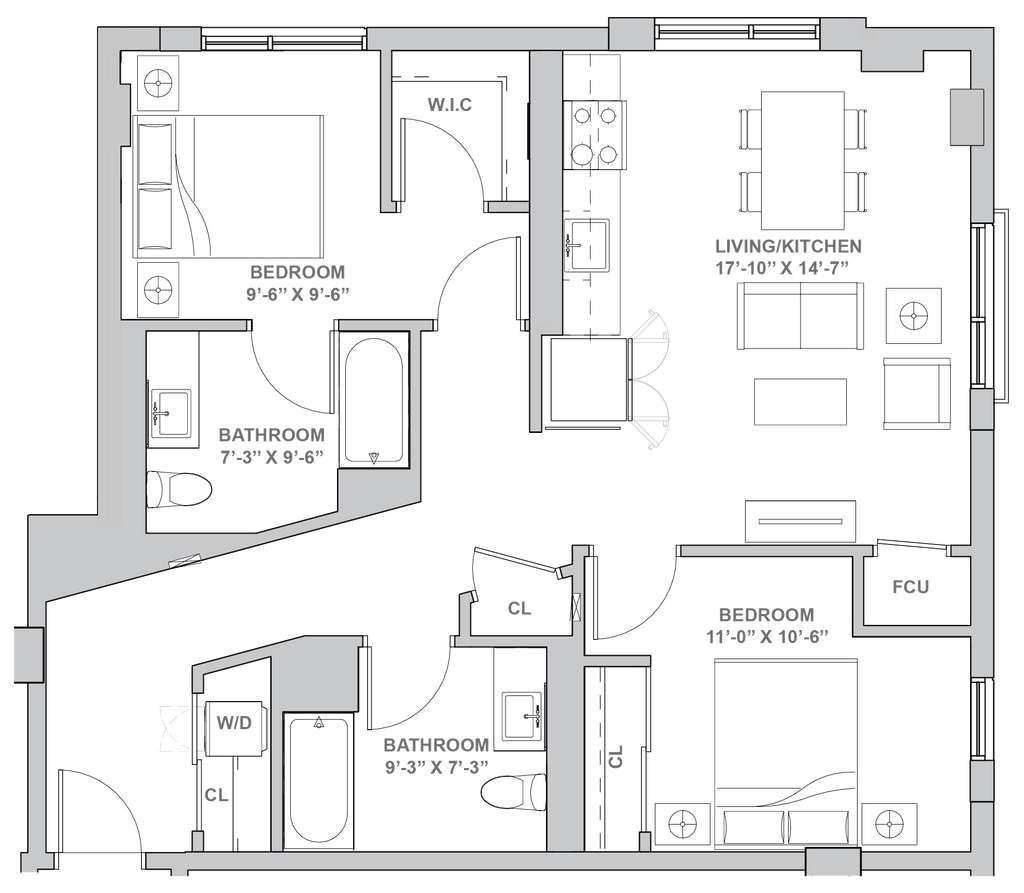 Apartment Model: 1GFrom $2,2031 Bedroom, 1 Bath, 639 sq ftAvailable Now![]()