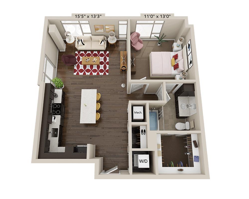 Studio, 1 Bath, 549 sq ftModel Gallery