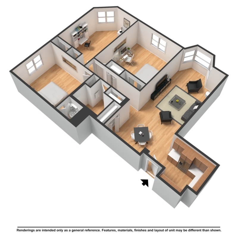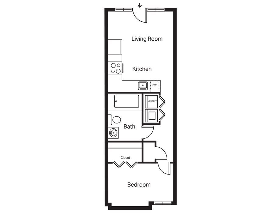 1 Bedroom Townhome - Floorplan 2 1 Bedroom Highrise