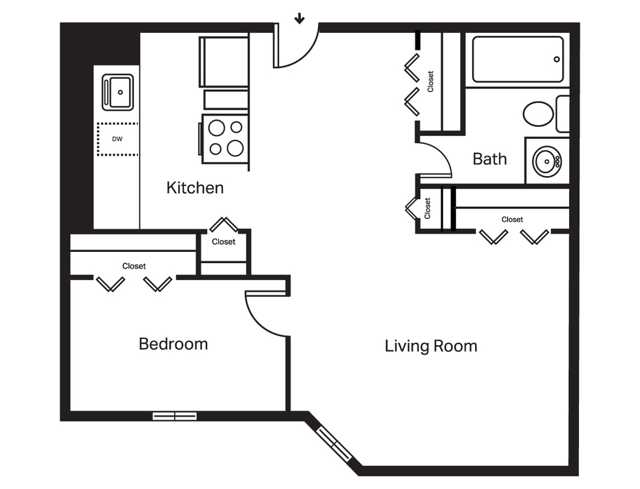 1 Bed, 1 Bath, 547-682 sq ftModel Gallery