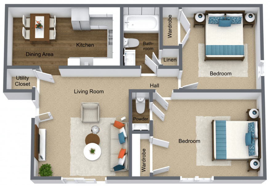 2 Beds, 1 Bath, 800 sq ftAvailable Nov 3Model Gallery