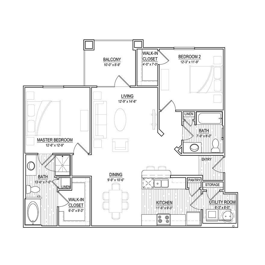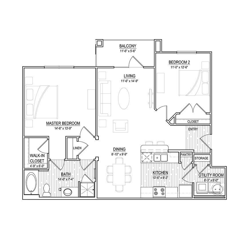 2 Beds, 2 Baths, 1208 sq ftAvailable NowModel Gallery