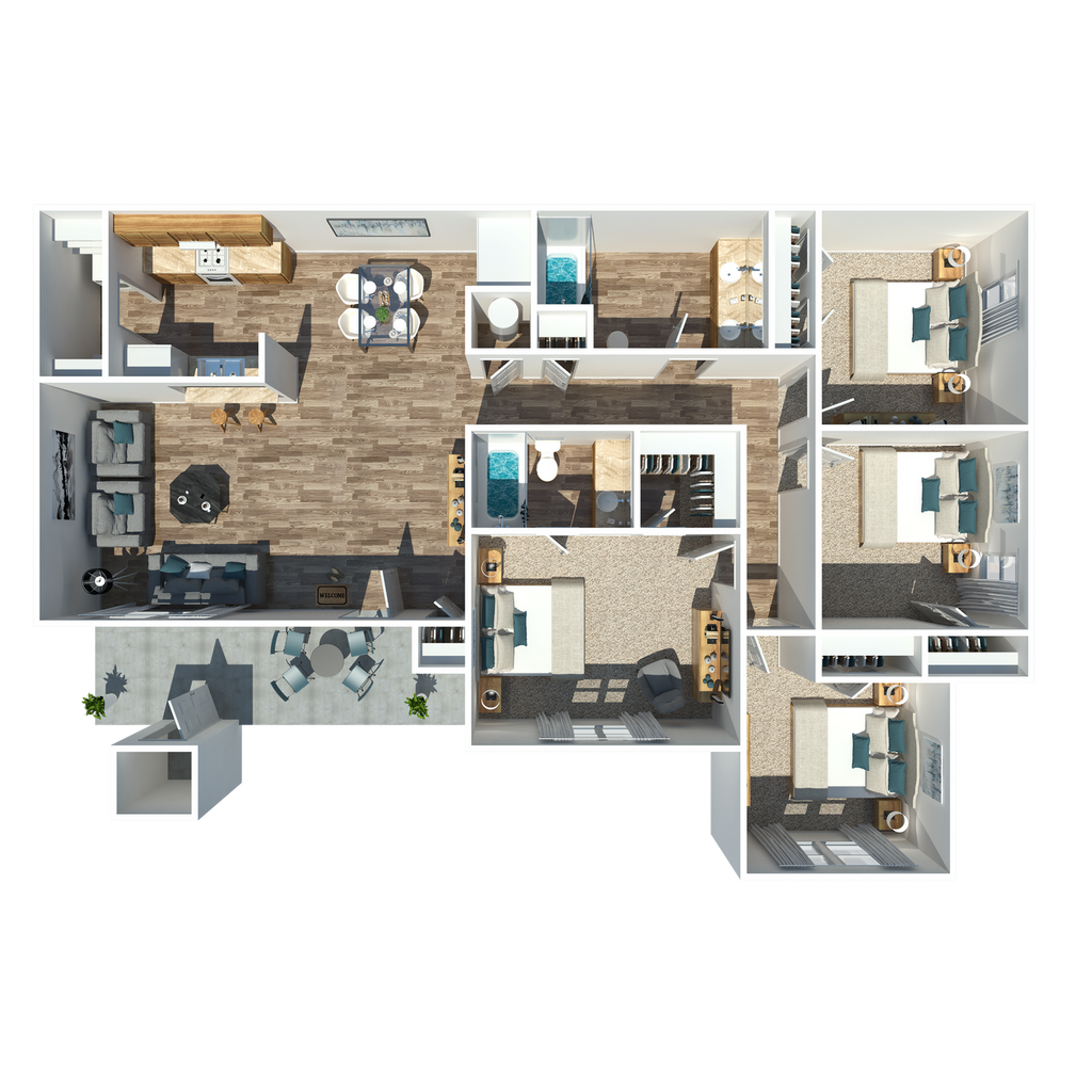 Apartment Model: 4 Bedroom 2 BathCall For Rates4 Bedroom, 2 Bath, 1333 sq ftUnavailable4 Bedroom 2 Bath - Floorplan 1