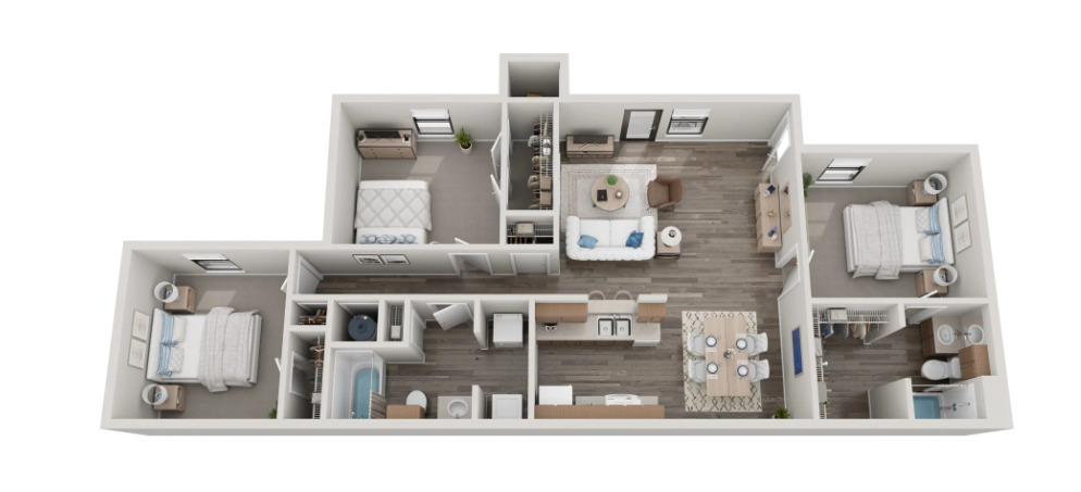 Apartment Model: Three Bedroom Two Bathroom3 Bedroom, 2 Bath, 1068-1099 sq ftAvailable November 5, 2025Three Bedroom Two Bathroom - Floorplan 1 Apartment Unit: 0213Apartment Model: Three Bedroom Two Bathroom3 Bedroom, 2 Bath, 1068 sq ftAvailable November 5, 2025Apartment Unit: 1114Apartment Model: Three Bedroom Two Bathroom3 Bedroom, 2 Bath, 1085 sq ftAvailable December 7, 20254 Bedrooms