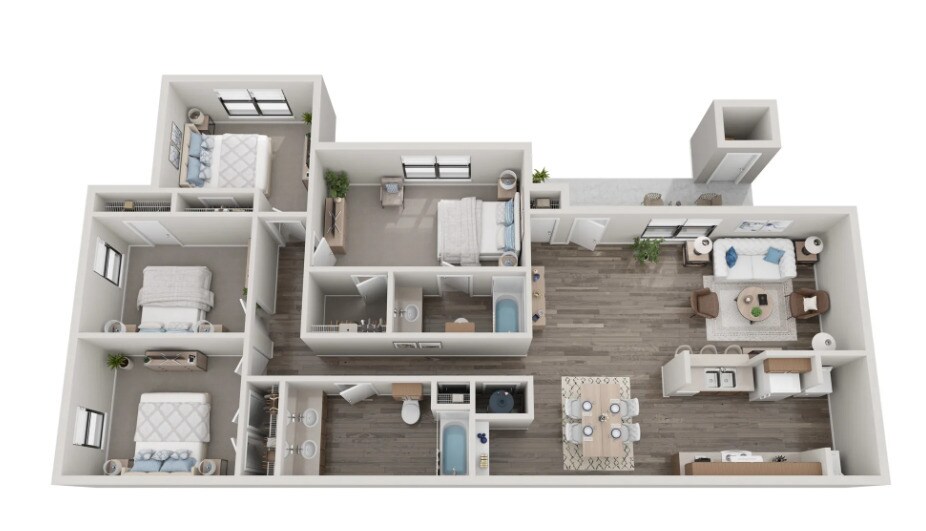 Apartment Model: Four Bedroom Two Bathroom4 Bedroom, 2 Bath, 1285 sq ftUnavailableFour Bedroom Two Bathroom - Floorplan 1