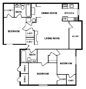 Apartment Model: 3x2 15253 Bedroom, 2 Bath, 1525 sq ftUnavailable![]()