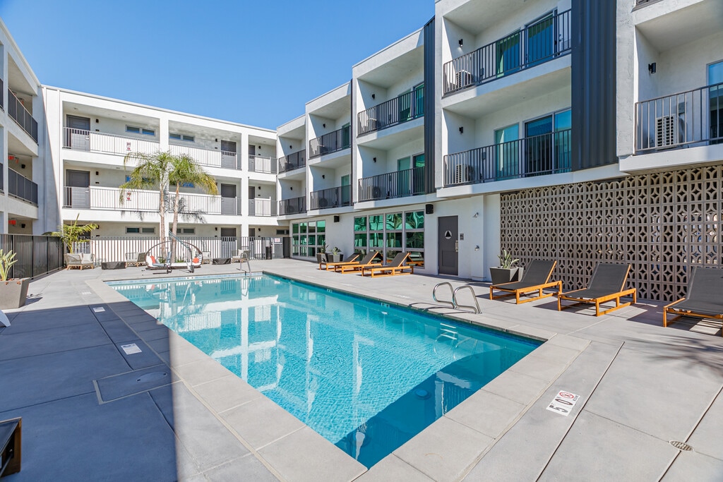 Chapman Place is a newly built modern apartment community in the Point Loma neighborhood of San Diego. Our community at Chapman Place is centered around a historically-designated midcentury modern building designed by famed architect William Krisel. We have incorporated this historic structure into our newly-built multifamily community at Chapman Place, featuring 82 luxury residences centered around beautifully landscaped gardens, an active social club & expansive pool area. Our residences feature a wide array of both interior luxuries and communal gathering spaces. All of our residences boast high-end interior finishes, with each apartment featuring stainless steel appliances, in-unit laundry & smart access, all designed with mid-century style. The community also features a wide array of gathering spaces, including a central Social Club, Outdoor Zen Zone, an expansive indoor & open-air fitness facility and sun-dappled pool deck with an outdoor BBQ and fire pits. Contact Crystal Zumbado to check out Chapman Place today!