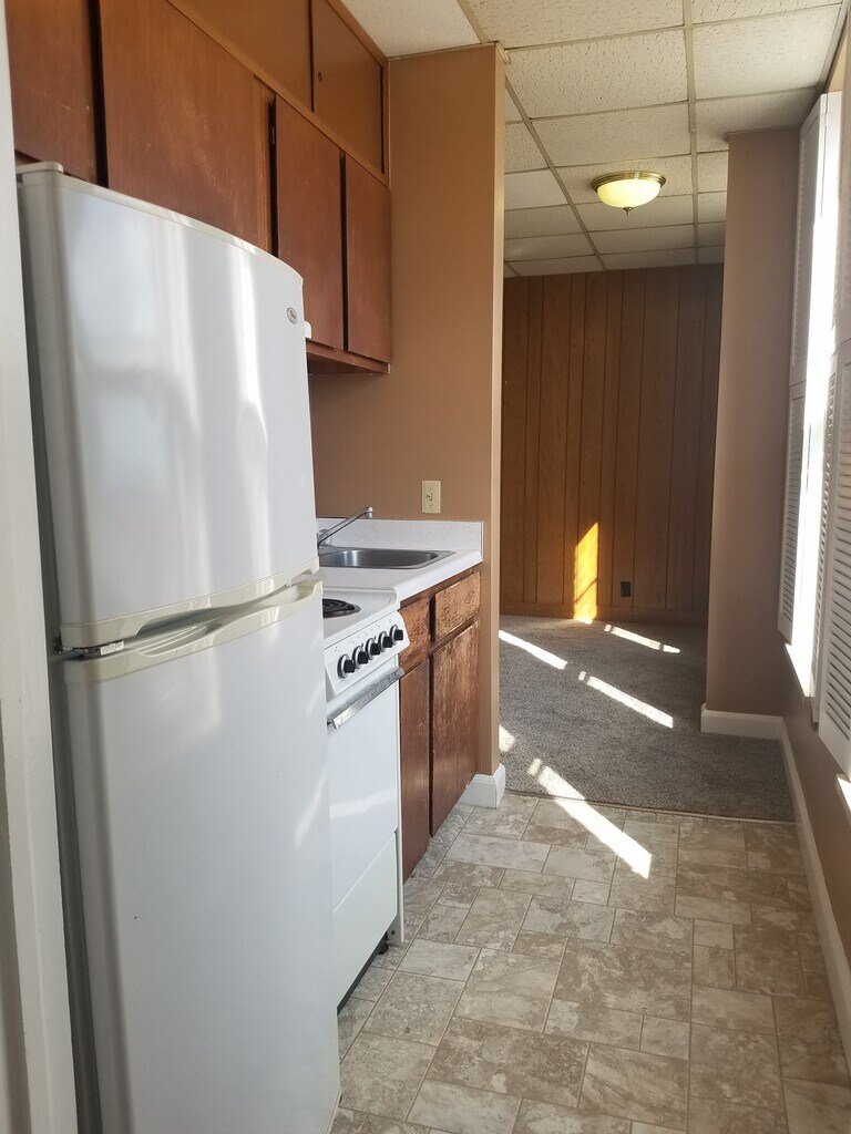 - Unit Description- We have a studio apartment available in downtown that includes ALL utilities! Water, sewer, heat, electric, ac, and trash are included. There are also shared coin operated washers and dryers available for you to use. Located within walking distance of boutiques, coffee, shops, restaurants, theater, post office, library, and more! No pets. No smoking. Call/text/message if interested. - Model Rent and Fees- Price- $695