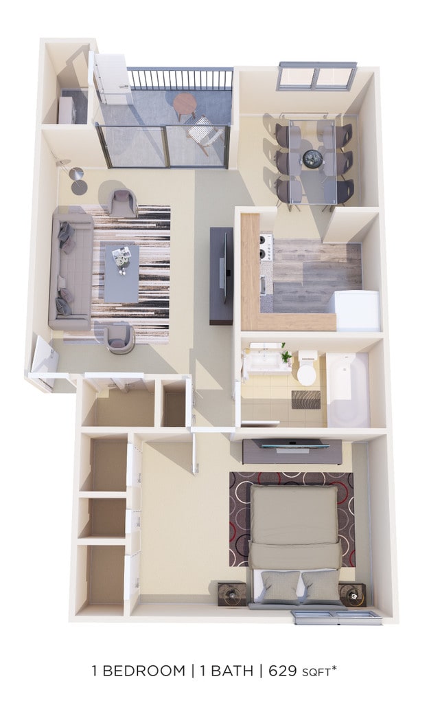 1 Bed, 1 Bath, 629 sq ftAvailable NowModel Gallery