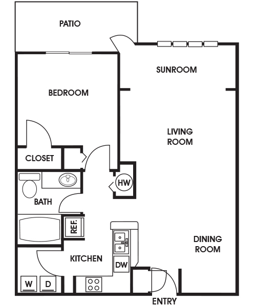 Apartment Model: Daniel$2,1192 Bedroom, 2 Bath, 1108 sq ftAvailable NowDaniel - Floorplan 1 Daniel w/ Sunroom