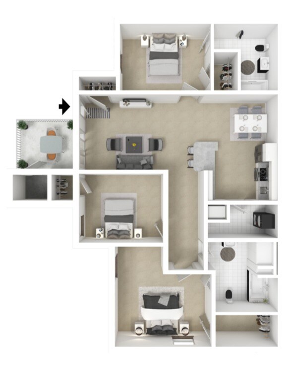 3 Beds, 2 Baths, 1250 sq ftAvailable NowModel Gallery