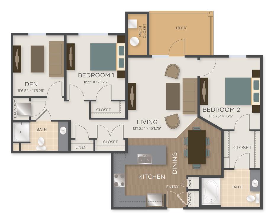 2 Beds, 2 Baths, 1169 sq ftModel Gallery