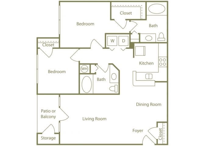 2 Beds, 2 Baths, 1235 sq ftAvailable NowLargest 2 BedroomThis is the largest 2 Bedroom at this PropertyModel Gallery