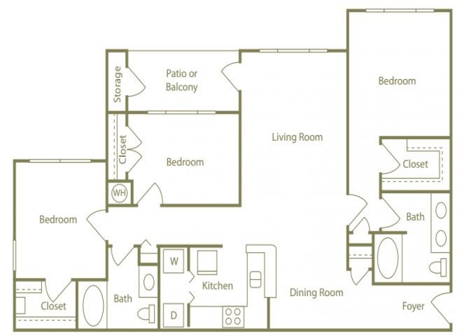 - Spacious 1, 2, and 3 Bedroom Floor plans