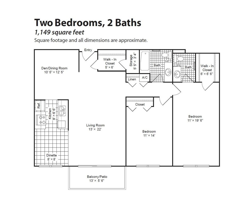 1 Bedroom 1 Bath - Floorplan 1 Apartment Unit: 100_210Apartment Model: 1 Bedroom 1 Bath$1,1991 Bedroom, 1 Bath, 853 sq ftAvailable February 15, 20262 Bedrooms
