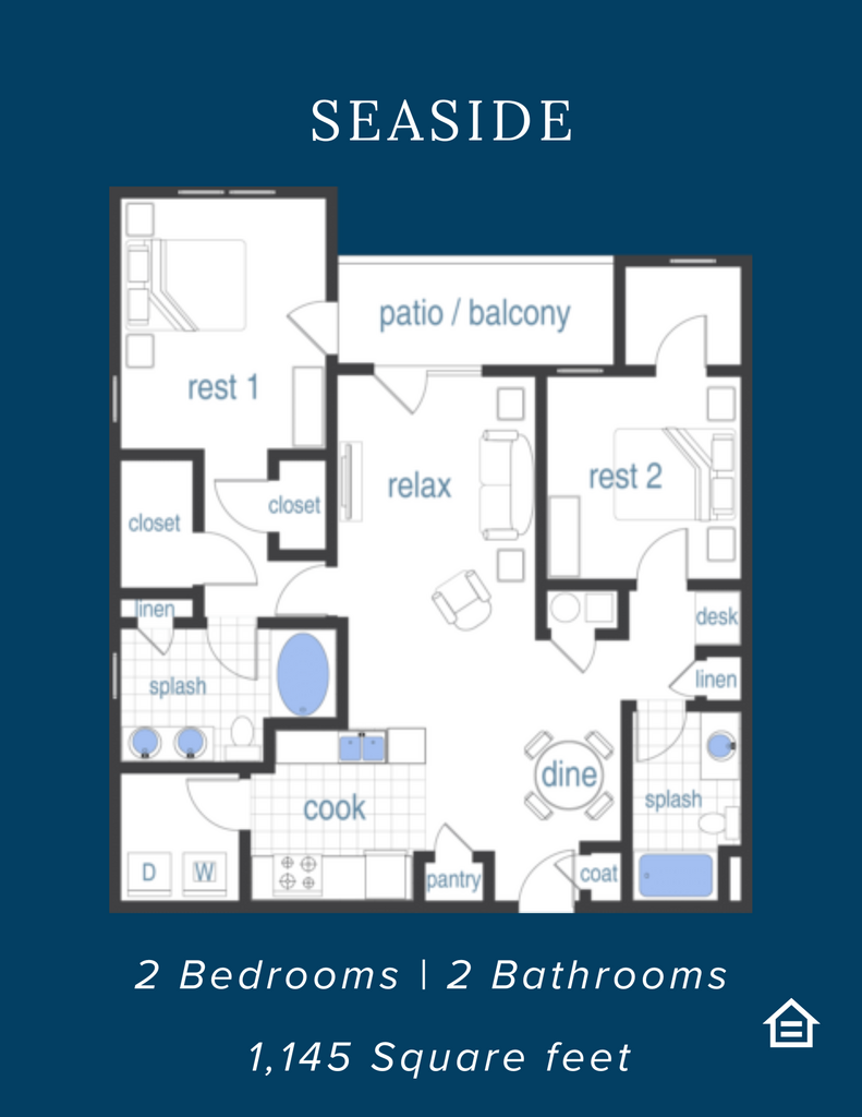 2 Beds, 2 Baths, 1145 sq ftLargest 2 BedroomThis is the largest 2 Bedroom at this PropertyModel Gallery