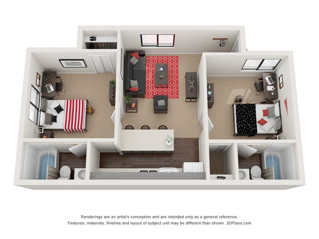2 Beds, 2 Baths, 950 sq ftModel Gallery