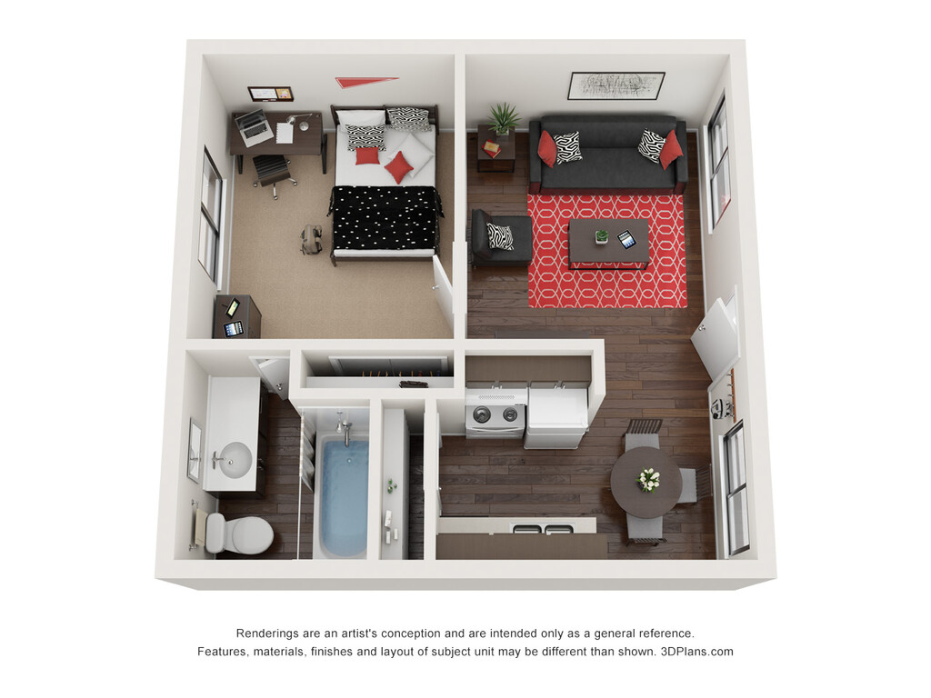 1 Bed, 1 Bath, 550 sq ftModel Gallery