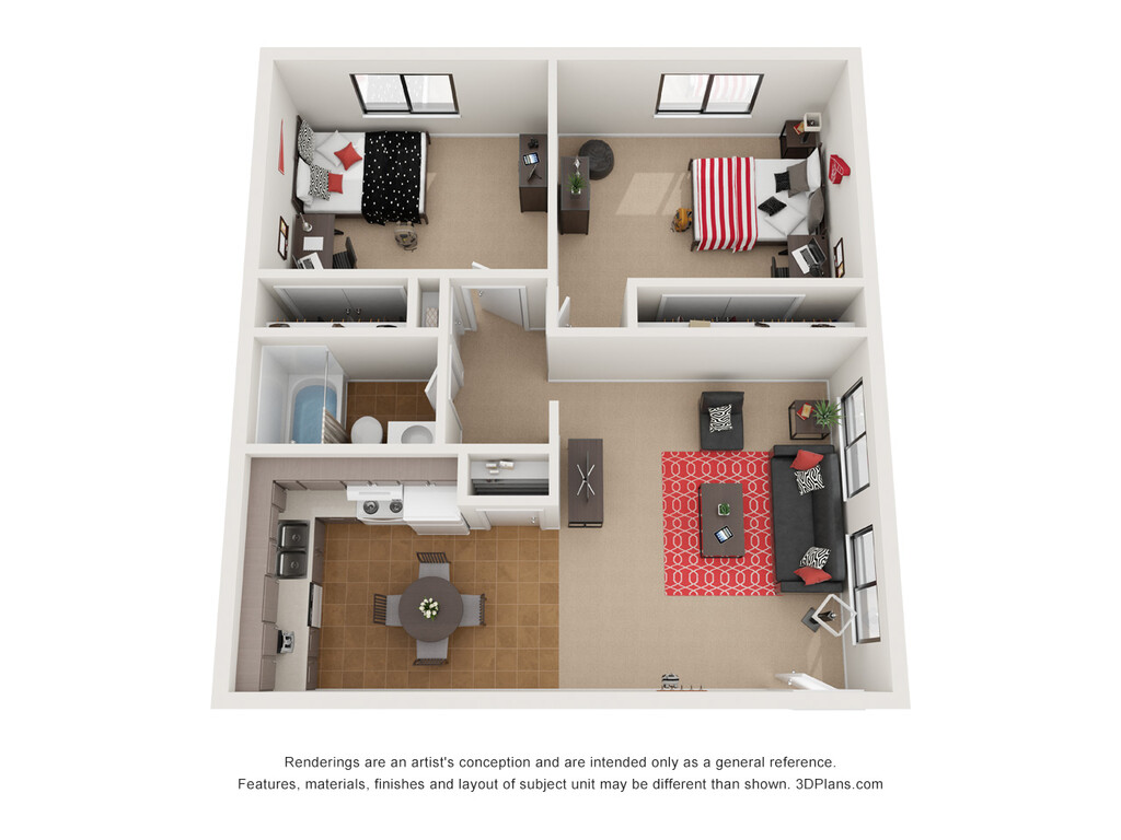 Apartment Model: 2 Bedrooms 2 Bathrooms2 Bedroom, 2 Bath, 950 sq ftUnavailable![]()