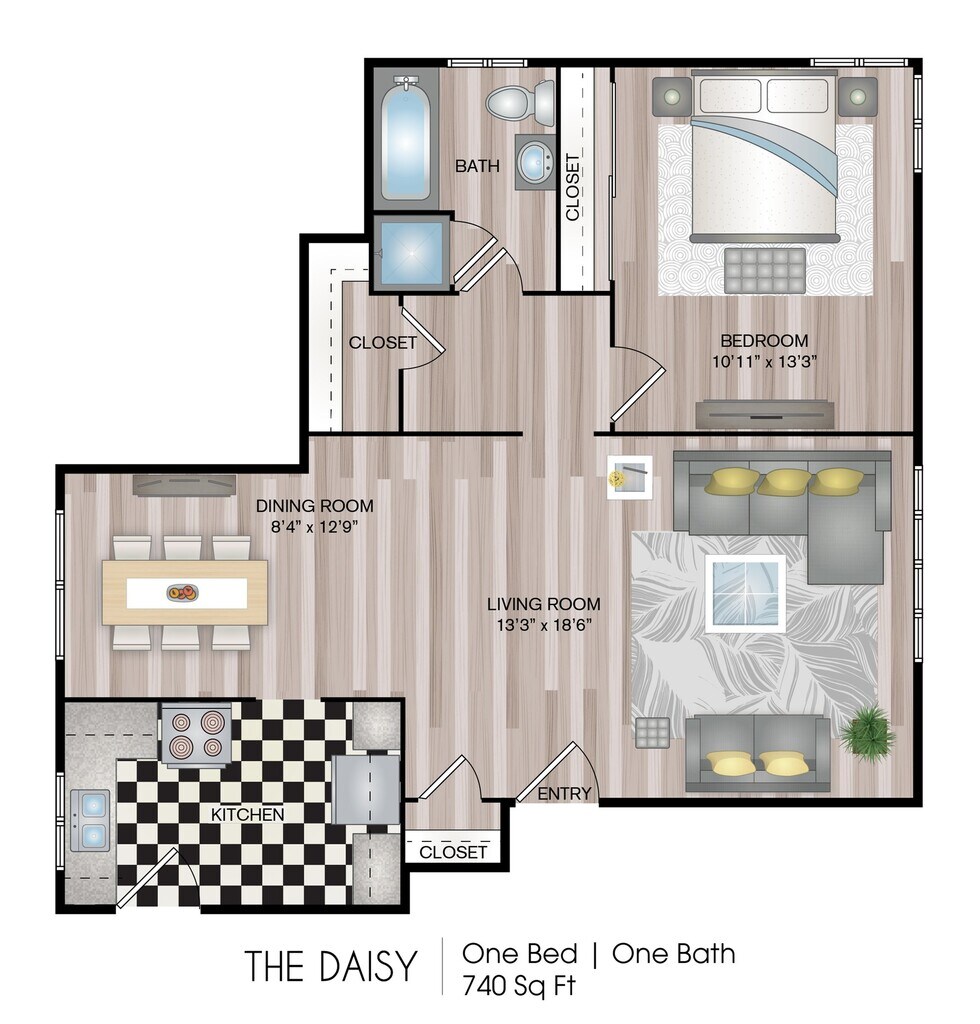 Apartment Model: The Daisy Renovated (Garden)$2,4951 Bedroom, 1 Bath, 740 sq ftAvailable November 7, 2025The Daisy Renovated (Garden) - Floorplan 1 Apartment Unit: 13322DApartment Model: The Daisy Renovated (Garden)$2,4951 Bedroom, 1 Bath, 740 sq ftAvailable November 7, 20252 Bedrooms