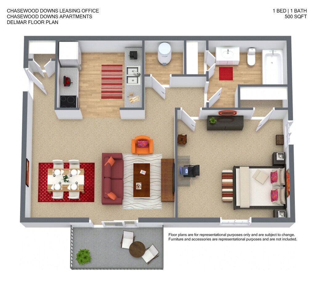 Apartment Model: 1BR w/ Balcony$1,1401 Bedroom, 1 Bath, 500 sq ftAvailable May 1, 2026![]()