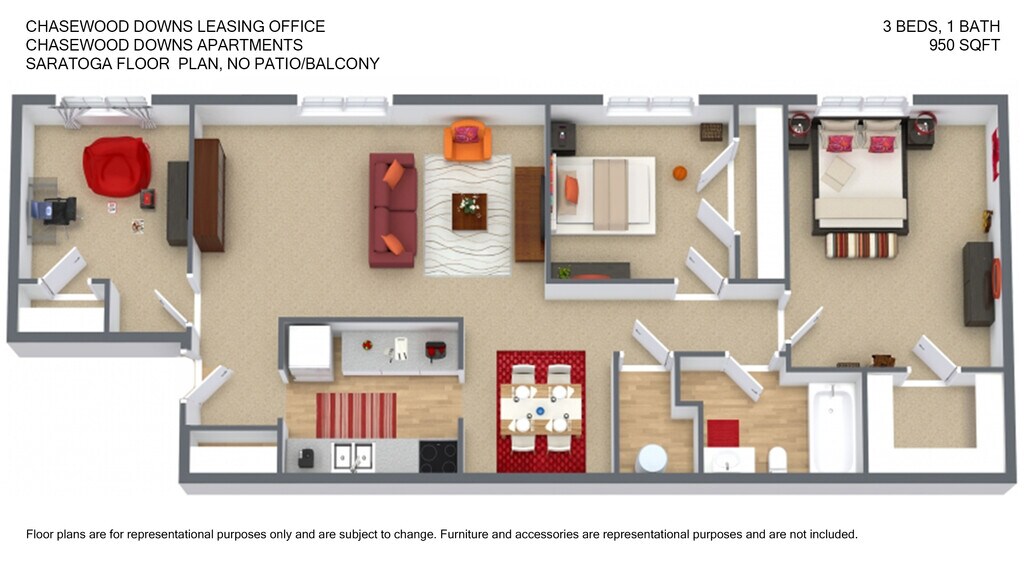 3 Beds, 1 Bath, 951 sq ftAvailable May 1, 2026Model Gallery