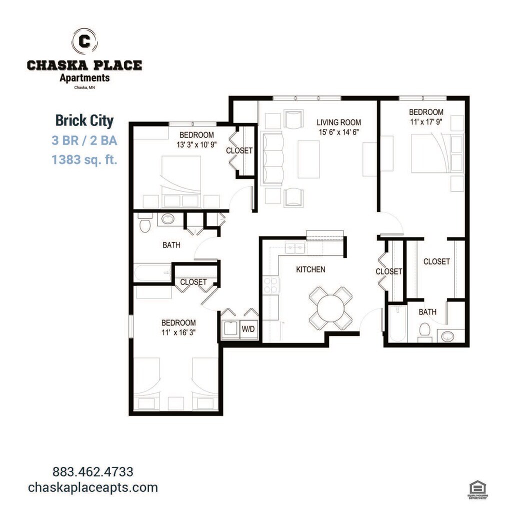 Studio to 3 Bedroom Apartments at Chaska Place Apartments currently range from $1,557 to $2,317