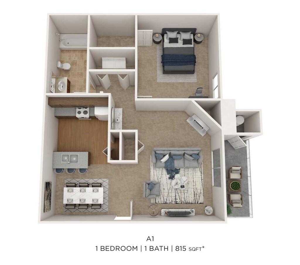 1 Bed, 1 Bath, 815 sq ftAvailable NowModel Gallery