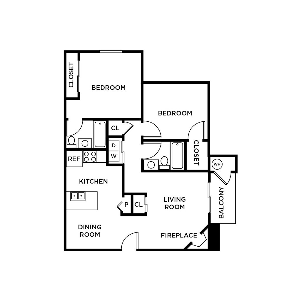 Apartment Model: Two Bedroom 2 BathFrom $1,0502 Bedroom, 2 Bath, 1026-1105 sq ftAvailable Now![]()