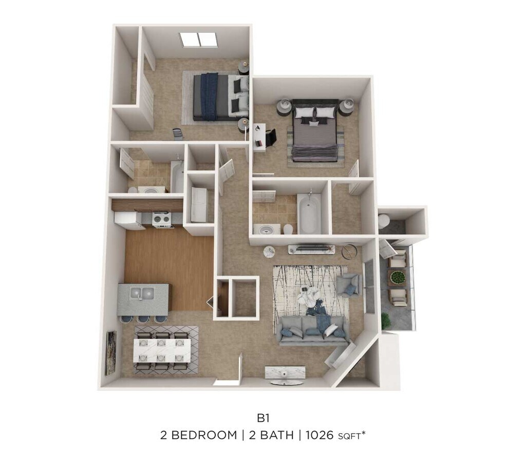 2 Beds, 2 Baths, 1026-1105 sq ftAvailable NowModel Gallery
