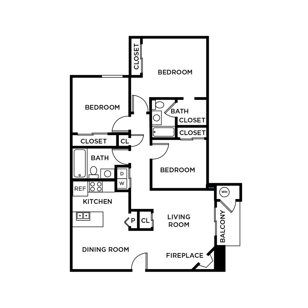 Apartment Model: Three Bedroom 2 BathFrom $1,4103 Bedroom, 2 Bath, 1325 sq ftAvailable December 12, 2025![]()