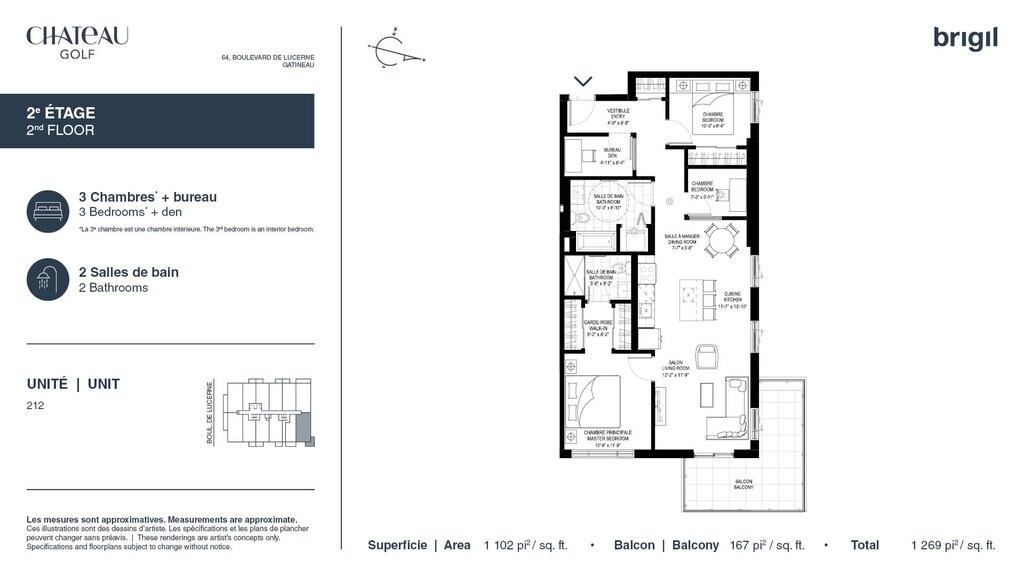 If you've always dreamed of living just steps from the water, close to green spaces and all urban amenities, Château Golf is for you. This brand-new community is located in Gatineau, in the Aylmer sector, near the Champlain Bridge. Only 2.5 kilometres from Tunney's Pasture and 7 kilometres from Parliament Hill, Château Golf offers a key advantage for those who work downtown, on either side of the river.
