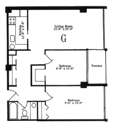 Apartment Model: GFrom $1,8002 Bedroom, 1 Bath, 810-815 sq ftAvailable Now![]()
