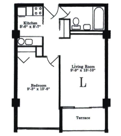 Apartment Model: LFrom $1,4001 Bedroom, 1 Bath, 425-430 sq ftAvailable Now![]()