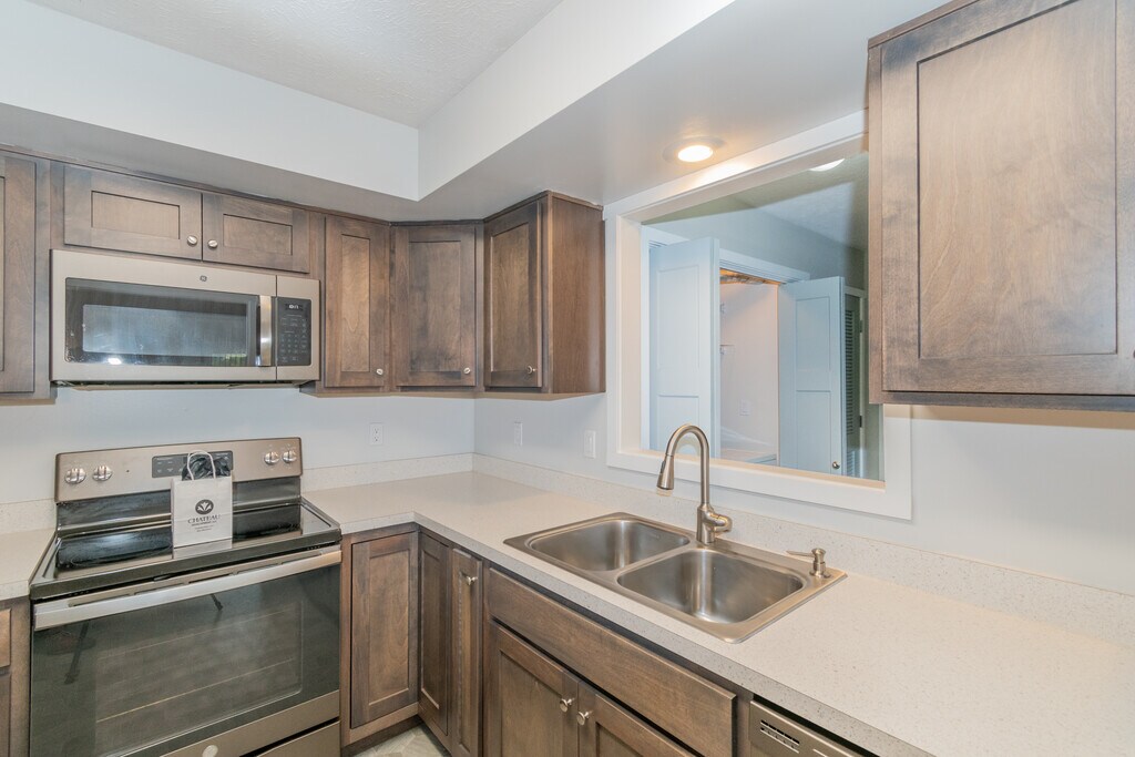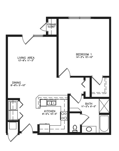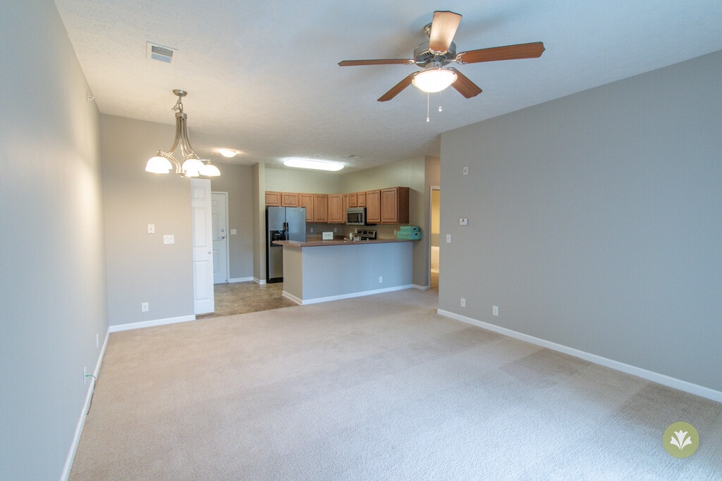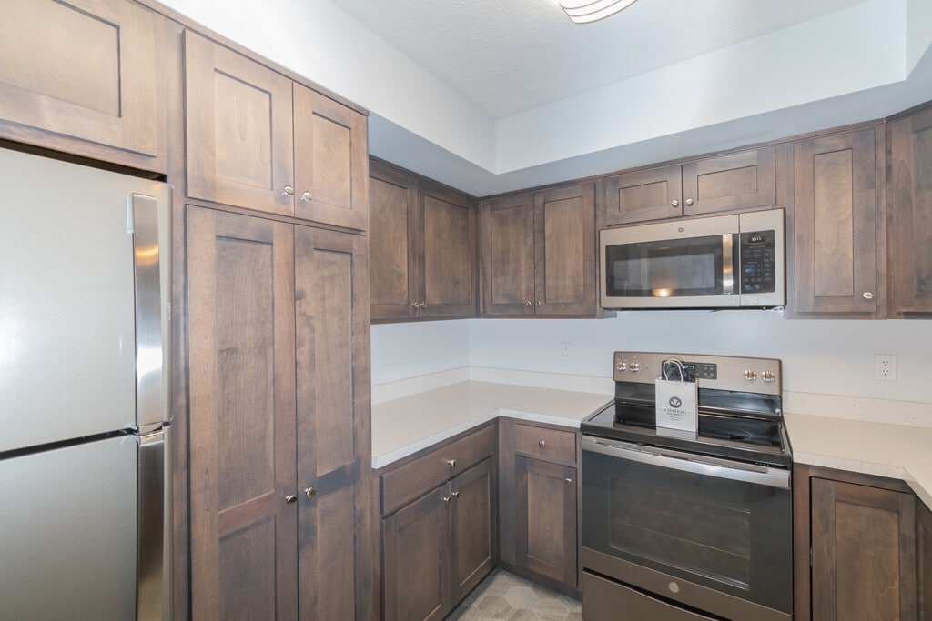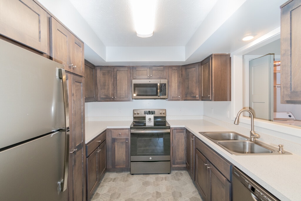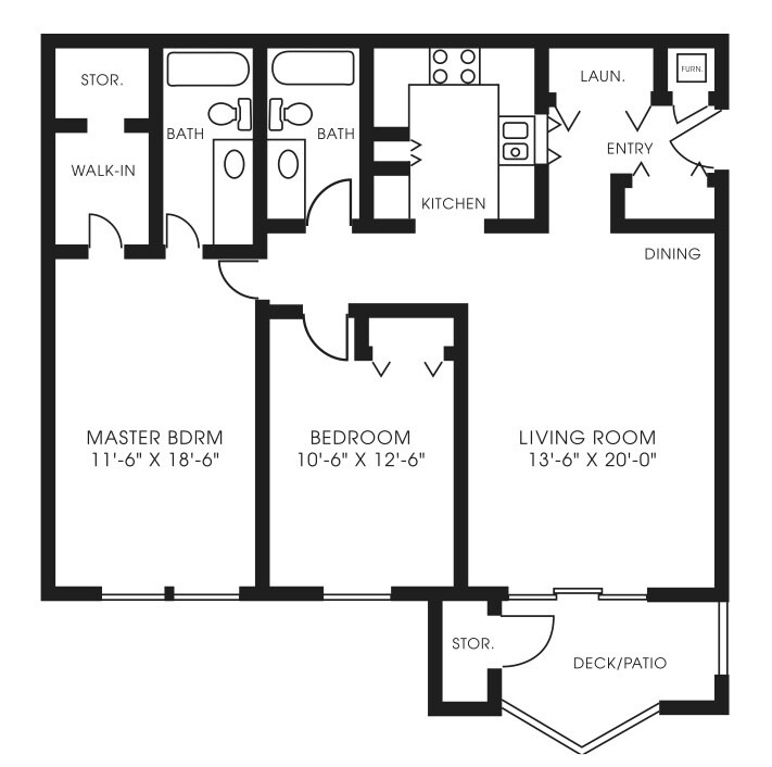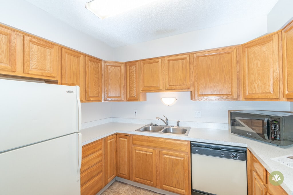 This is our Evergreen floorplan with two bedrooms, two bathrooms, and 920 square feet of living space. This floorplan offers spacious living areas and a fully-equipped kitchen. Please call a member of our friendly leasing staff for more information!
