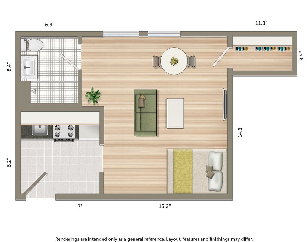 Apartment Model: Studio CStudio, 1 Bath, 531 sq ftUnavailable![]()