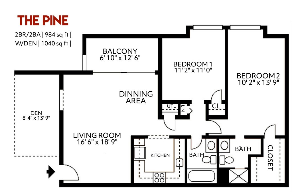 Price Availability Date Unit Sq Ft $1,079 Call for Availability The Oak with Den Classic 856 sq ft Model Amenities and Features