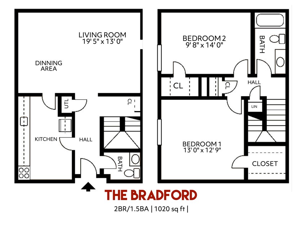 Apartment Model: The Bradford Deluxe$1,4892 Bedroom, 1.5 Bath, 1020 sq ftAvailable NowFloorplansPhotos![]()