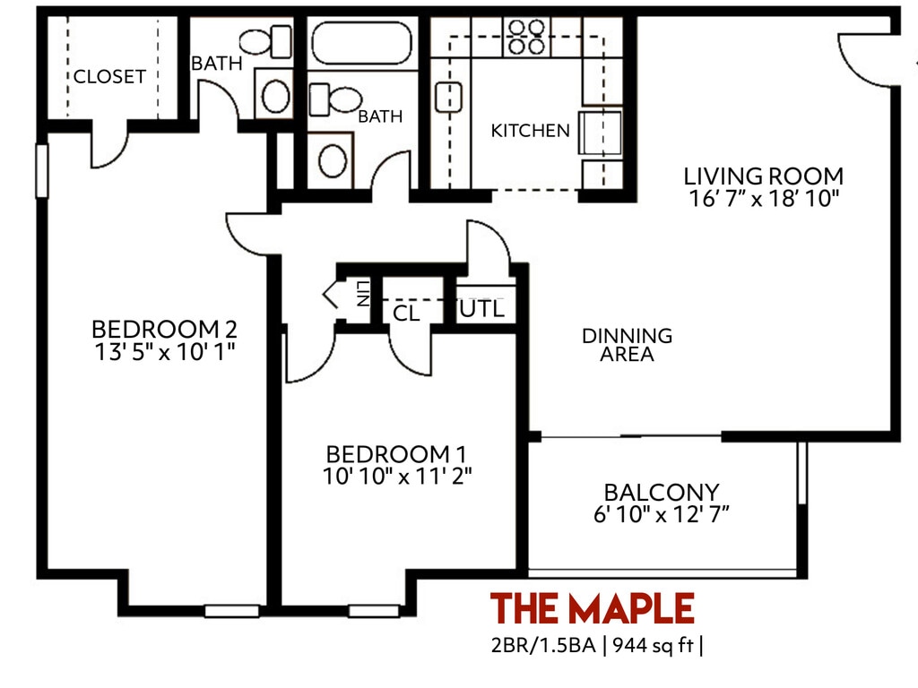 Apartment Model: The Maple Classic$1,2692 Bedroom, 1.5 Bath, 944 sq ftUnavailableFloorplansPhotos![]()
