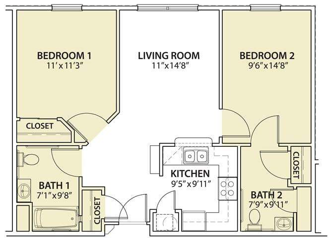 Apartment Model: 2 Bedroom2 Bedroom, 2 Bath, 789 sq ftAvailable Now2 Bedroom - Floorplan 1