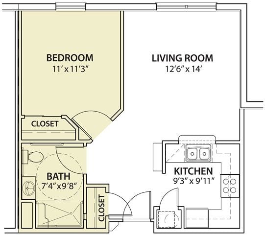 Apartment Model: 1 Bedroom1 Bedroom, 1 Bath, 588-674 sq ftAvailable Now1 Bedroom - Floorplan 1 2 Bedrooms