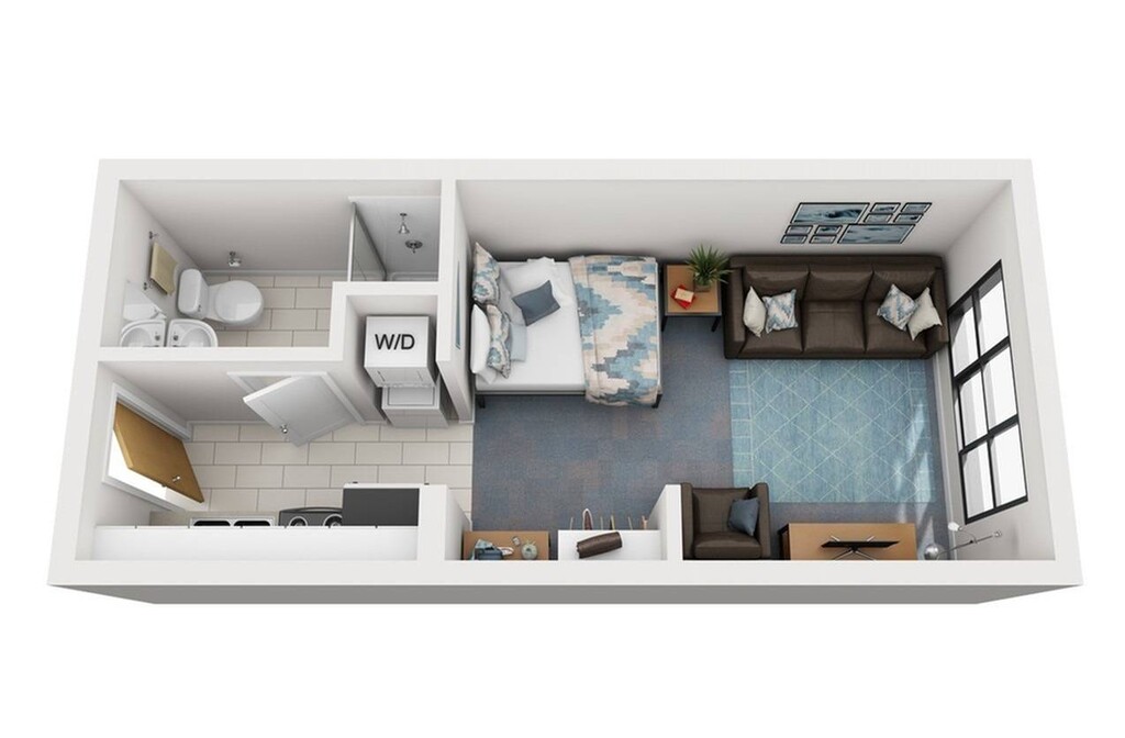 Cunningham - Floorplan 1 Apartment Unit: PrivateApartment Model: Cunningham$1,105Studio, 1 Bath, 372 sq ftAvailable NowApartment Unit: PrivateApartment Model: Cunningham$1,105Studio, 1 Bath, 372 sq ftAvailable August 14, 20261 Bedroom