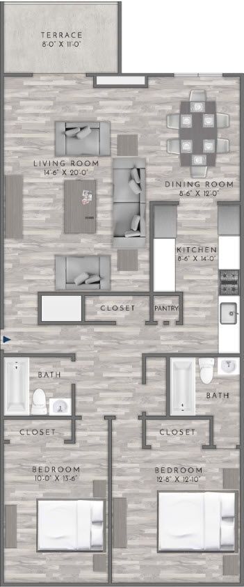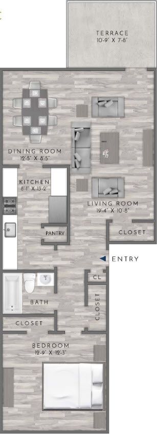 1 Bed, 1 Bath, 812 sq ftModel Gallery