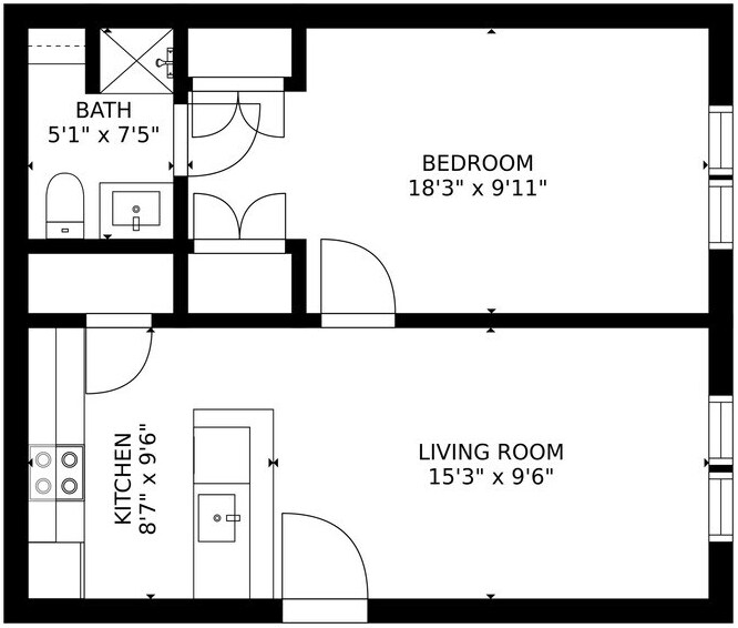 1 Bedroom, 1 Bathroom - Floorplan 3 ![]()